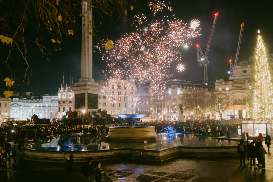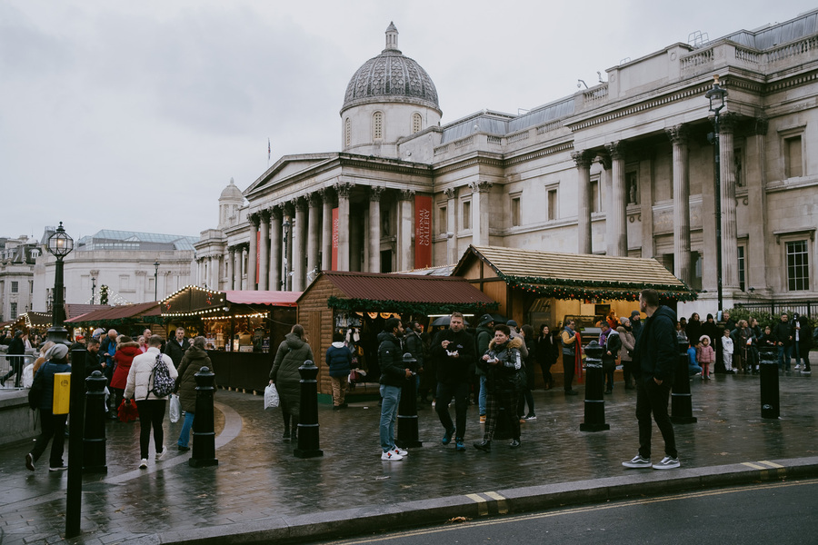 German-style Christmas markets take over Trafalgar Square.